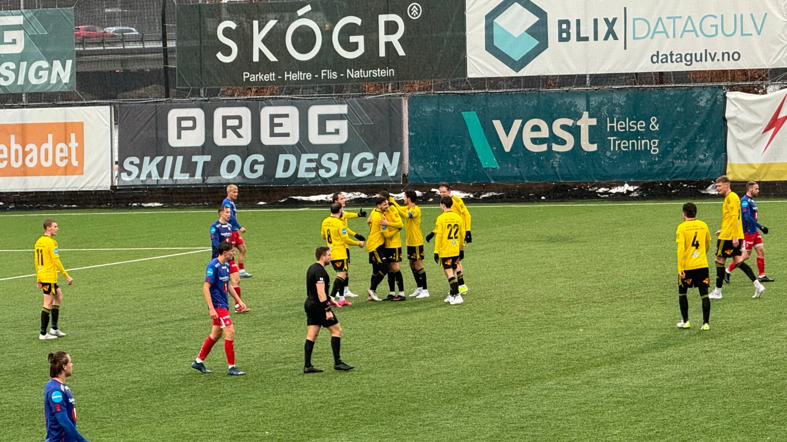 Fjorårets divisjonskollega, som endte opp med 2.plass og kvalifisering mot Lyn, stilte med et solid mannskap, og det var deilig å se at de gulkledde jevnet ut divisjonsforskjellen mellom lagene i første omgang.